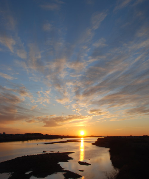 私がこんな時間に起きて出掛けるなんて…初の 「初日の出」そう、実は元旦に日が昇るのを見物したのは初めて。 選んだ場所は利根川!407号が利根川を渡る 「刀水橋」 にて♪ 深夜に聖天様に行ってきて即・ブログ更新、ちょびっと仮眠して6時頃のお天気の様子を見て…と思ってたら東のお空はほとんど雲が無かったので、決行!日の出は6時40~50分位かなあ、とりあえず行ってみよう刀水橋の歩道は結構、初日の出ウォッチの人気スポット。朝も早よから歩いてる人がたくさんいる、いる!そして利根川に初日の出が反射してる写真を見たことがあるので川の上まで行きたいんだけど、歩くとけっこう距離あるもんだね(^^;このへんで見よう…6時40分頃だったかな、東の空はこんな色。わ~ トリさん朝早いな~♪お、「いよいよ」 って感じになってきたぞル~ル~ルルル~♪(夜明けのスキャット・イエローモンキー版)おおお~! ちょうど雲の無いところから頭がチラ見え!ちょっとずつ、ちょっとずつ大きくなってって…まぶしい~昇りきった頃にはもう、直視してられない感じ(^^;普段なら絶対起きない時刻だけど(笑)、夜明けの空ってのは本当に綺麗だよね♪ほんの数分のお楽しみ、これくらいに昇るともう殆どの人がお帰りモード。私も眠いから帰ろうっ(^^; でもその前に。年越しや日中は大行列の聖天様、早朝ならさすがに列も短い!今度はちゃんとお参りしてきたよ。仮本殿での初参りも今年で最後、6月の御本殿公開がジワジワと迫ってきたね♪そうだ! 忘れかけてたけど、ここにはロウバイが咲いてるんだった♪これでお家に帰り、お雑煮食べてまた少しだけ仮眠…まだ見たいものがあったので、午後からなんと再び聖天様へ!大晦日から、2日間で4回も行っちゃった(^^; まあそのへんは後日♪