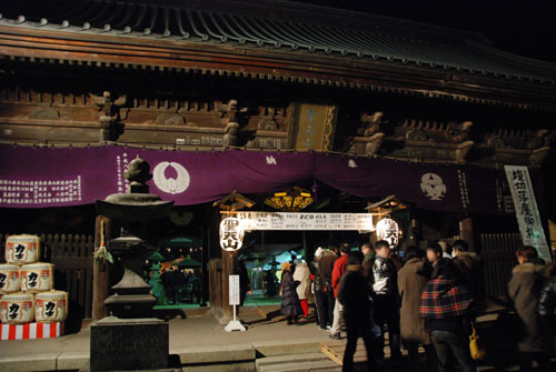 明けましておめでとうございま~す!(^◇^)寒波が何じゃい! 根性系地域ブロガー、そんな事で夜の取材をためらったりしまへん♪年明けをどこで迎えよう…やっぱり今年は妻沼聖天様に居るべきかな!と。昨年は 「えんむちゃん」 騒動があったけれど、わたくし今年もまた色々と?お騒がせします(^^;まずは、何となく毎年2月開催が恒例となりつつある、見栄子展示会!予告すっかり遅くなっちゃったけど、今年もやらせていただきますよん「見栄子SHOW 2011」 2月4日(金)~16日(水) 於・くまがや館2Fギャラリー熊谷市を中心とした写真展示、ブログ裏話本販売 (新刊出せるか?)、○○特集コーナー (まだ内緒♪) などなど…土日祝は本人常駐予定、昨年の様子はカテゴリ 「見栄子展示会」 をご覧くだされ♪正式な予告は、また間際になってから載せますね~。それとあと1つ…これとは別に、今月中にちょいとBIGなお知らせがあるよ!まあ、えんむちゃん騒動と同じくらいビックリな話かなそこは上の伏せ字部分にも絡んできますよ~ 乞うご期待♪♪さ~て、話を初詣に戻しまして~。 大晦日・23時50分頃に聖天様到着もう長蛇の列が出来てて、0時になるまで参拝者は一番内側の門 「仁王門」 の前で待たせておくんだね。カウントダウンのアナウンスがあると (意外!)、鐘をついて御本殿前に入場~!0時10分現在、列の最後尾は一番外側の門 「貴惣門」 の内側約30mまで♪平和の塔がライトアップされてる…その脇には、除夜の鐘を鳴らす人達の、これまた長い列がいたよ!元旦昼間は、13時~と14時~に 「妻沼太鼓初奉納」 があるそうだよ。今年は大福茶屋さわたさんが、深夜営業で甘酒サービスしてくれてたよ!濃くておいしい…お腹すいてたし。ん? その張り紙、何かが足りない… ああ、「サービス」 の 「ー」 を忘れちゃったってそうそう、明るくなってから聖天様へ行く方へ…1月1日~5日 (10時から16時)、大福茶屋さん2F&周辺の空き店舗などで手づくり市のミニ版みたいな「ほのぼのshop」 が開催されるよ!出店者さんは、食べ物やさんも含めて12~13件くらいかな?ピンクののぼり旗が立つので、大福茶屋さんの辺りを歩いてればわかるよ。昼間、チラシ貰いに大福茶屋さんに行ったら2Fの陶器店さんの展示が出来てるっていうから、ちょっと見せていただいたけどうあ~手作りのお皿、超シブかっこいいい~!こんなアート感たっぷりのお皿が千円以下で買えるなんて、普通あり得ません…茶屋さんのすぐそばの 「壱番館」 という建物では 「私たちの聖天様」 という展示をしているみたい…あら、いつぞや私が作った妻沼グルメ案内も飾ってくれてる(^^)まあ、そんなこんなで、今年もよろしくお願いします♪♪