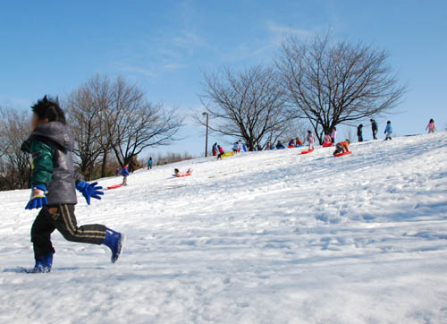展示会出動の前に、ちょいとゲレンデに…行ける筈もなく(^^;ここは熊谷スポーツ文化公園、いいなあ~ 私もソリに乗りたいようっ♪♪やたらと雪に降られる、今年の見栄子SHOW。昨夜も思いのほか降る、降る(^^; 夜中に外の景色を見てゲゲッ!だったよ。でも降ったら降ったで、熊谷の雪景色を撮っておけるチャ~ンス!フツウに景色だけ撮りにスポ文へ行ったつもりが、何やら童たちの楽しげな声…ありゃ~ お子ちゃまがいっぱい、ソリやってるよ!うわ~楽しそう、いいないいなっ考えたことなかったけど、スポ文には小高い丘がいっぱいあるからソリ遊びには絶好の場所だよね♪すごい、こんなにいる…たぶん近くの幼稚園(保育園)の子たち&せんせい?きっと雪が降ったらソリで遊ばせるのが定番なんだろうね、ソリこんなに用意されてるんだもん(^^; (あるいは公園で貸してくれるのかい??)うらやましいな~私が子供の頃、こんなソリ乗ったことないよ。 せいぜい段ボール?上から見ると、けっこうな勾配だよ。お~っ この子うまい♪♪わ、それ私がやりたいなぁ~(^^)さっきと同じ子?実は真面目に滑れるのか♪ 格好いいじゃんこの子は2個使い…アリなのか?3人乗りもアリで~す! ま、1人は先生みたいだけどね♪さあ、2月16日…いよいよ 「見栄子SHOW2011」 も最終日!最後だから私も1日会場にいるよ、10時はじまり・16時終了・くまがや館はコチラ♪