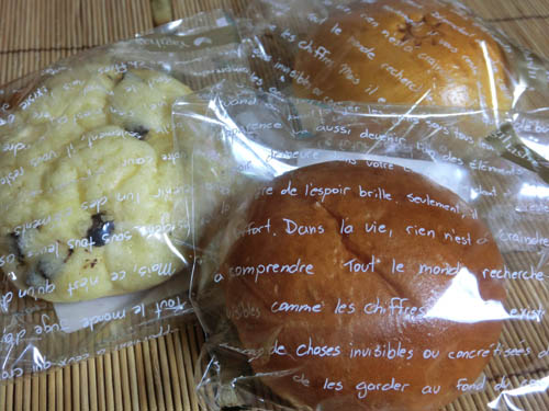 「冷やしぱん始めました!」 のボードに、思いっきり惹かれ…八木橋地下にあるベーカリー・PANESさんで発見、思わず即刻GET(^^)PANESといえば、コロコロ可愛い焼きたてミニクロワッサン! →以前掲載最近他にも気になるパンがあったりして、近々寄ろうと思ってたところ♪したらば先日、店頭のボードに 「冷やしぱん」 なる文字を発見!冷蔵ケースに、サンドイッチの隣にちょっとずつ並んだ3種類のパンは、どれも168円。スイーツみたいなお洒落な包みに入って、説明書きも何だかおいしそうだよ!じゃあ…イキナリ全種類試してみよっか♪手前の太陽マークは 「冷やしておいしい生カフェあんぱん」、奥の無地が 「冷やしておいしい生抹茶あんぱん」。コーヒーのほうは、カフェオレあん&コーヒーゼリー&ホイップクリーム入り。わ…このカフェオレあん、意外と苦みがきいてて美味しい♪ややドライな感じのふかふかパンにクリームが合うし、ふわ・ぷる・じょり・ふにゅ…いろんな食感が混ざった感じが気持ちイイ味的にも中味の具材がよく調和してる、これ一番気に入った♪抹茶は、玉露抹茶あん&抹茶ゼリー&ホイップクリーム入り。万人に受け入れられそうな程良い濃さ&香りの抹茶味、王道だね!こちらは 「冷やしておいしいチョコメロンパン」。表面がサクッツとした生地にはチョコチップ入り、中にはバニラクリーム!けっこう甘いけど、甘い中にもチョコのホロ苦さがあって飽きないね。クリームもおいしい、なんて贅沢なメロンパン~(^^)どれも1つひとつの素材がシッカリ美味しい、良く出来たデザートパンだった~。そう、これはまさにスイーツですな♪ 恐らくは夏期限定。そんな大量に作ってるわけでもなさそう?なので、売り切れ注意??本来の主目的はコレ…くまさん形のパン、4枚入り210円♪フレンチトーストは2枚入りで210円だったかな、可愛くて気になってたんだ(^^)これ、食べる前は、まあ形の可愛さ重視のパンでしょ?ってナメてたけど食べてみて、嬉しい誤算…ふわふわしっとり、これパンとしておいしい!買ったその日に、焼かず&何も付けずに、そのまんま食べるのが一番イイな♪急いでたので、説明書きとか見ずに買ってきちゃったけどこのモチッとした感じと、生地のやさしい自然な甘みは…米粉かな?って、違ったらゴメンよ(^^;うちわ祭が終わったら、熊谷中心地の次なるイベントは8月13日(土)花火大会!豪華な大連発の八木橋さん提供花火は、毎年拍手が起こる一番人気♪今年も期待させていただきましょ~(^^)でもその前に、今週末・金~日は深谷がお祭り~! メインは土曜、詳細コチラ♪※このブログはあくまで筆者の都合に合わせて自主的&自費で運営する 「個人ブログ」 です。お店関係のより詳しい情報は各店に直接お問合せ下さい。 リクエストもお受け出来ません。コメント欄では、悪口・他店のクチコミ情報・本題と無関係な話のみの書き込みは御遠慮下さい。別の話題には掲示板ページをご利用ください。