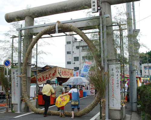 6月30日といったら胎内くぐり、今年は2か所巡ることができた♪毎年お邪魔している熊谷市街地の高城神社、そして3年振りの赤城久伊豆神社。なんだか市街地にいる間に何本も電話が…今日に限って用事がたくさん舞い込む(^^;お天気もヤバかったけど、用事も雨も、すべてが絶妙のタイミングでクリア雨がやんだ隙に、まずは高城神社いってみよ~!胎内くぐりの定義はこの通り♪毎年、参道と17号沿い、それから市役所通りまで、たくさんのテキヤさんが並ぶよ。輪のくぐり方は諸説あるけど、現在の高城神社は 「踏まずに跨ぐ」 べし!毎年新たに作られる、堅く綺麗に締められた立派な輪っかはちっちゃい子の膝くらいの直径があるんだねおお、3人並んだ♪蒸し暑くてちょびっとだけ小雨がパラつく中、何だか風が強まってきた早めにお参りを済ませるとしよ~か今年はこれがやってみたかったんだ、人形(ひとがた)納め!今ちょうど、お祓いしたい気分だしこんな所でゆっくり写真撮るのも失礼だから、サラッとね。名前と年齢を書いて、息をふきかけ、お人形の身体をなでて…人形じたいは無料だけど、人形はお賽銭と一緒に賽銭箱へ入れるべし♪私が、心をこめて、長い時間をかけて、身銭を削って積み上げてきた聖域がどうかこれ以上土足で汚されませんように…このまま歩いて八木橋へ…先日御案内した、8Fカトレアホールでの聖天様の魅力を紹介する展示会(入場無料)を見物♪展示物の写真は撮れないから、場内の様子は載せられないけど彫刻の写真を中心とした展示内容で、ホール外には境内の風景写真&切り絵が。私も、聖天様春季例大祭の稚児行列&学童相撲の写真を飾っていただいてるよ(^^)次の用事まで少し時間があったので、久々に赤城久伊豆神社(熊谷市石原1007)の胎内くぐりも行っとこ♪2008年に行って見た時のことはコチラ!ここは新幹線と秩父線が交わる辺りにありま~す!こちらの縄はちょっとワイルドな感じに締められていて雨のお陰で、こんな自然のティアラが見られたキャ~ 降りが強くなってきた~(^^;まあ何とか2か所とも、傘ささずに済む程度だったよ…めでたし♪