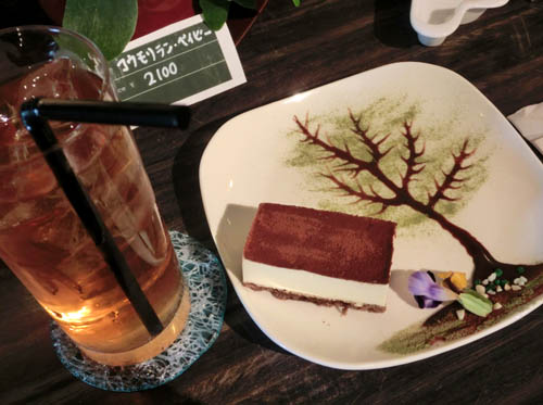 お皿の模様だと思うよね?食べる直前、そうでない事に気付く…青山の細道にある風花というカフェに行ってみたよ。 さすが青山、個性的(^^)先日銀座に行った時、そもそもは青山に用事があったんだよね。青山も久々だし、用が済んだらカフェの1軒も寄ってこうか♪この辺りは、裏道にハイセンスかつ個性的なお店がいっぱいなんだよね雑誌で見かけたこのお店、表参道駅の近くで、確か駅から歩いて、大坊珈琲店(目立つのでよく目印にするよ) より4本向こうの細道…この、青山にしては殺風景な道でいいみたい。 こんな所にメニューボードが出てる♪有名なガーデンデザイナーさんがプロデュースした、お花屋さんを兼ねたお店だと書いてあったけど、すっごい緑もじゃもじゃ!表参道駅のすぐそばで、こんな光景を見ようとは♪ あれ、こっちは裏口だったかな?こちらが正面~♪ もう看板も木に埋まっちゃってる感じ!メニューボードがあるので、辛うじてココが入口とわかるよ(^^:そして店内がまたすごい! お客さん結構いるし、全容をお見せできないのが残念だけどどこもかしこも観葉植物だらけ、ジャングル状態だよ!?青山はアート感覚のカフェが多いけど、これまた超個性的だこと♪カウンター席も、厨房との間を仕切るのは鉢植えの植物!なんか東京にいるって事を忘れちゃいそうですね~本日のテーマは 「ご飯いらないのでスイーツのハシゴ」 なんだけどこんな日に限って、日替わりのランチがガパオ…大好きな匂いが漂ってくる~(^^;ん、お洒落系カフェのくせに、「おもち参道 (サンド)」 なんていうシャレで 「表参道」 と引っかけた餅入りホットサンドもあったりするよでもせっかく青山なんだから、普通にお洒落なティラミスでいこうかな♪アイスティーをつけて、セットで800円♪あったかみのある絵のお皿にお花を飾って、可愛いな~と思ってよく見ると…あっ! これお皿の模様じゃないよ、全部チョコやナッツで描いてあるのね!?わ~わ~ビックリ、器用だね~(^^)緑のおコナは抹茶かな? ピスタチオかな??ティラミスは芯までキリッと冷えてて、ストレートにマスカルポーネの味がしたよ。お花も食べちゃっていいのかな? 普通に食っちゃった急いでたので、ササッとお店を出なきゃならなくて残念最近このへん、あんまり歩いてないなあ…数年前はたまに根津美術館とか岡本太郎記念館へ行ったり、青山墓地方面をぐるっとしたり、けっこうテクテクしたんだけど。その気になれば政治の中枢エリアを突っ切って、銀座まででも歩ける♪レンタサイクルでもアリだな…東京長距離散策願望、再燃中そういえば2年くらい前だったか、大好きな雑誌 「散歩の達人」 で「東京23区全てを最短ルートで結んで歩く!」 みたいな無謀な企画ページがあって…スタッフさんが早朝から夜までかかって、ヘロヘロになって達成! アホね~(^^)でも、それ位の事がしたいんだよな~