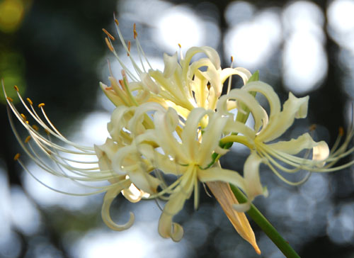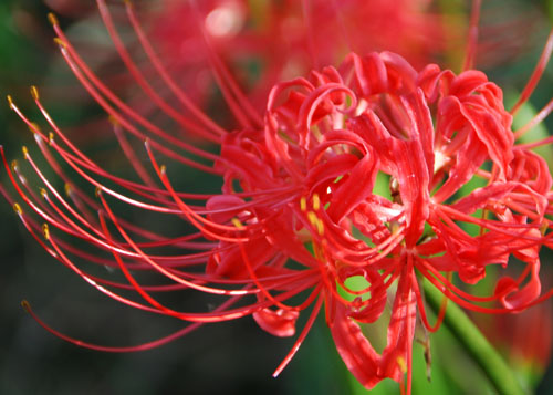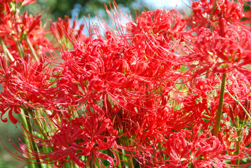 彼岸花を下から見上げられる場所があった…こんな所にねぇ(^^)桜が綺麗な深谷市の唐沢川、実は彼岸花もたくさん咲いてる事には気付かなかったよ。何日か前、深谷で国道17号を走っていたら、唐沢川を渡る 「平和橋」 のところで赤いものが視界の隅に…あれっ!こんな所に彼岸花あったんだね!?深谷のまち好きな私とした事が、今まで気付かなかったよ(^^;また深谷方面の用事が出来たので、今度はついでに車を下りて偵察!でも超・綱渡りスケジュールなこの日、私に許された時間は10分間! ギャオ~ス城址公園に車をとめ、モンテリーノさんの前を通って唐沢川のほうへ歩いていくと…あれ、こっち側にも彼岸花あったのかい♪ しかも土手の上だからしてこうして下から見ることができるよ…こんな場所、初めてかもしかも秋の夕刻、何だかすごく色が綺麗だよう17号をくぐって、本来の目的だった平和橋のほうへ行ってみる♪こっちは川の内側にたくさん咲いてるよ! 入れないけど(^^;でも外から見るだけでも意外なほど綺麗時間的に遅すぎたかな~と思ったけど、この時刻(4時45分)に来てよかったかも(^^)車の切れ目を待って、今度は17号を上から横切り (なかなか車が切れないんだココは!)川伝いの道から北のほうへ戻ると…こっちの内側は、まだこれから咲くんだね♪10分間でなんとか任務(?)完了!次なる任務にもギリギリ間に合いましたとさ