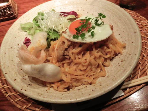 万里野らしい一皿、カフェごはん風に可愛く盛られたアジアン麺♪草木万里野の熊谷店、久しぶりに行ったよ…しかも夜の入店は何年ぶりかな?アルディージャ戦の日は、えんむちゃんに付き添った後、ご一同で夕食!もう夜遅いから、えんむちゃんは先に帰らせて、あやしい大人4人組にて~ここは夜12時までやってるんだよね…着いたのは夜9時半頃だったと思うけどこの時間でも駐車場がかなり埋まってる! 相変わらずの人気だね前にランチ時に来たのは…おお、もう2年半も前かいっ!仕切りのある小部屋がたくさん軽めの間仕切りのところもあるけど、それだけでも何だか気が休まるね。私たちが案内されたのは、靴を脱いで上がる席…そんなスペースもあったんだね。今まで靴のまんまの席しか入ったことなかったよ。暑い日だったし、まずは冷たい飲み物で。(食事と別途ね)私はマンゴーラッシー、隣のお嬢さんはメロンソーダ、向かいの疲れた中年男性2人(笑)は素直におすすめメニューの 「アサイジュース」。アサイって何だっけ? ああ、あの見た目ブルーベリーみたいなやつね♪アサイジュースは、可愛くスターフルーツが飾られてる。マンゴーラッシーは、ちょこっと生クリーム添えでアーモンドのトッピングこれは予定外で嬉しい、デザートがわりになる~とろ~りやさしい甘酸っぱさ、ラッシーは軽くお腹にたまる。 お腹すいてるから調度イイ♪とは言っても、ごはんは量的には軽めでいいかな~と思ってサラッと麺類でも…と選んだ 「コチュジャン風味が香るまぜまぜ麺」 924円は実はけっこう 「どす~ん!」 だった…わお!麺、ボリューミィ(^^;ラーメンの極太タイプといった感じの、もちっとしたちぢれ麺。コチュジャン味とはいっても韓国の麺って訳じゃなくて、何ていうんだろうコレ。やっぱり 「アジアンヌードル」 って言うしかないかな?混ぜて食べて下さ~いって事なので、勿体ナイけど目玉焼きや飾りのフワフワせんべいを崩してぐちゃぐちゃに…お、キムチも入ってピリ辛♪ 見た目はベトナムっぽいけど、お味は韓国系。ベトナム料理も韓国料理も好きなので、2つのいいとこ取りな感じは嬉しいしかし最近ちと胃が縮み気味だったので、この大皿麺はお腹いっぱい~(^^;疲れた中年は、もはや考える気力も残っていなかったのか? これまた安直に2人揃って、店頭のおすすめボードに書いてあった 「豚トロとキムチの石焼きご飯」。豚トロや目玉焼きがトッピングされたご飯を、高速かき混ぜ中~ジュウジュウ♪女性ウケの良いメニューが多い万里野さんだけど、この石焼きご飯は濃厚系が好きな商工マン2号 (あ、言っちゃった) も 「うまい」 って言ってたよ(^^)お嬢さんは、チャーハン茶漬け?そんなのもあったのね。ズルズル系大好き、私好みかも(^^)「茶屋マリノ」 から、微妙に言いづらい 「草木万里野(くさきまりの)」 に変わってもう3年以上は経つかな?こちらのお店は、アジアン&イタリアンとか、無国籍料理とかいう分類だけど気になる小洒落たメニューがとても多いので熊谷でどこのお店に行くか迷った時の候補として、常に頭の片隅にあるお店(^^)ああ…「鮪とアボガドのとろろどんぶり」 も気になる~※このブログはあくまで筆者の都合に合わせて自主的&自費で運営する 「個人ブログ」 です。お店関係のより詳しい情報は各店に直接お問合せ下さい。 リクエストもお受け出来ません。コメント欄では、悪口・他店のクチコミ情報・本題と無関係な話のみの書き込みは御遠慮下さい。別の話題には掲示板ページをご利用ください。