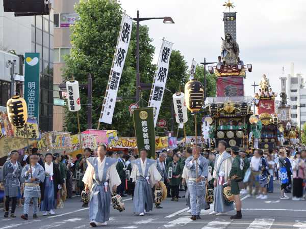 やっと12台すべてに会えた…さすがに日曜は見物人さん多し!熊谷うちわ祭、1日目は別件もあったので神輿渡御から一気に夜の部へ飛びます。※引き続きコメント欄を閉鎖中です、申し訳ありません。とても個人的な事ですが、私が旧ブログを始めたのは2005年の7月25日。今日は20周年記念日ですイエーーーイとだけ言っておいて、うちわ祭どんどん行きます。「1日目その3」まで、早朝からの神輿渡御を追いましたがその後は「出来島あばれみこし」に行くため、後ろ髪を引かれつつ一時離脱あちらはあちらで、今回はメディア取材が入っていたこともあり大はりきりで、例年より大人数が川への飛び込んじゃったりしてクライマックスが長引き(もちろん後日詳細に載っけます!)うちわ祭に戻るのが予定より遅れ気味…ひぃぃ~ちょっと遠いところに車を置き、小走りで駅前に向かい何とか夜の部スタートの10分前に間に合った(^^;もう既に、思いきり汗かいちゃった(笑)18時半、先頭にして年番町の第弐本町区山車が動き出したよ。まずは、各町の纏が横並びで華麗に舞い~星川通りに待機していた第弐本町区が、駅に向かって進んできてそれを向こうで、ホームの筑波区がお迎え…と思ったらあ、そうか! 今回、半数は1本南の通りに待機していて北からの山車・屋台が来たら、順に1台ずつ出てくる訳ですな。もうちょっと南側で見たかったかも(^^;お次は銀座区と荒川区…あれっ銀座の給水山車がリニューアルしとる!これは後で、昼間にちゃんと撮らせていただこう。仲町区と伊勢町区…おめめ輝く伊勢町の弁天さま素敵第壱本町区と弥生町区が続きまして~桜町区、鎌倉区、本石区、石原区…これで全部だね。全てを見送る頃には、駅ロータリーはごった返し。そっか、きょうは日曜日だっけね。混雑で人の波も動きが遅いな、あっち行くのに時間かかるな。駅舎を背にして並ぶ12台に、じわじわっと近寄り…何だかんだ、至近まで辿り着いた(^^)いつもは中心部も狙うところだけど、今日はちょっと難しいな。逆サイドに回るだけにしておこうかな。近年、ここはアーケードが出来たので背後の眺めはちょっとアレですが(^^;ミストが出ているから、涼めるのは良いこと。はい、ぐるっと1周~初日夜の初叩き合いは、いつも贅沢な眺め。いろんな方向から見たいのであります。いったん解散したあと、今年もそのへんに集まるようだね。「その5」へ続く!●当サイトのお祭り・イベント写真は、お顔にモザイクを施しています。→説明コチラ●当サイトの内容はブログ・facebook等 「ご自身で責任を持つサイト」以外には一切の例外なく転載 (抜粋・要約含め) 及びリンクを厳禁いたします。