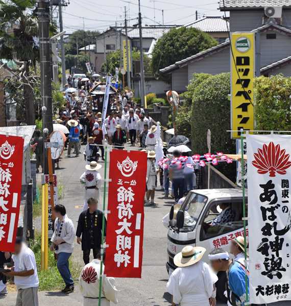 稲荷神社までの直線、近いようで結構時間かかるのだよね。葛和田あばれ神輿、「その1」からの続きはお昼頃の大野伊奈利神社近辺より!※引き続きコメント欄を閉鎖中です、申し訳ありません。久しぶりに朝1番の神事&宮出しから拝見した、今年の葛和田。長らくゆっくり見ることが出来なかった祭りなので今回は出来るだけ、色んな場面を見たいなと。なので、いったん離脱するけど昼近くからまたお邪魔しようという事で、11時40分ごろに来た利根川土手沿いの大野伊奈利神社。予定表では12時頃にここ、とのことだったけどまだ誰もいねぇ~。 とても暑い中、ただ立ってここで待つのは嫌なので(^^;ルートを遡って、御神輿を捕まえにいきますか!まだ、この最後の直線までは来ていないね。が。その先を道なりに東へ行くと、すぐに発見!恐らく、このお地蔵様の辺りで小休止かな。さすがに、朝より人数が増えてきていますな。(私も水かぶりたい~!)お地蔵様まで来れば、大野伊奈利神社まで200m位かな。といっても、超重量級の御神輿につき神社までの間、道々まだ何度か接待を受けつつ休止しま~す。やっぱり神社到着は、予定より遅れ気味。そして暑いよ…今年の祭りは出動日みんな暑かったけどこの日も、結構キツい気温だったさ(^^;それでも、土手に向かってくる御神輿をこうして眺めると待った甲斐ありました~!と(^^)御神輿が大きすぎて鳥居をくぐれないので、脇を通り抜けて置く前にすこし上下に揉んで(重たかろうに…)下に置いたら、今度は人が上ってしばし揉み合い。地面が水浸しになるほど水が掛けられた後はお昼休憩をはさんで、利根川に向けて車移動。また離脱するけど、葛和田トラックのジャッキアップは見届けておこう。では皆さんのお昼休憩に合わせて、私めもしばらくクールダウン。13時20分過ぎ、利根川河川敷「葛和田の渡し」渡船場にトラック到着~!ここで、ほぼ予定表通りに戻してきましたな。トラックから御神輿を下ろしたら、川もみの前に神事。御神輿の扉を開け、神様に外へ避難していただくのだよね。ご神体は御簾に包まれていて、たしか宮司さんも地元民さんも直接見たことが無い、と聞いたような。では、いよいよ一番の見せ場・川もみ!今年は、昨年お姿が見えなかった「あの御方」も復帰されて楽しみ「その3」へ続く。●当サイトのお祭り・イベント写真は、お顔にモザイクを施しています。→説明コチラ●当サイトの内容はブログ・facebook等 「ご自身で責任を持つサイト」以外には一切の例外なく転載 (抜粋・要約含め) 及びリンクを厳禁いたします。