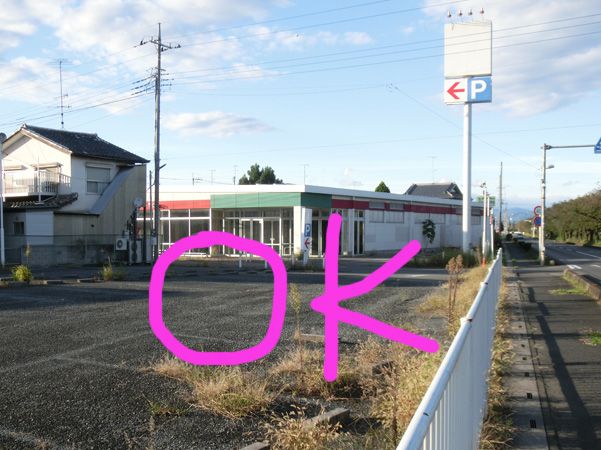 店舗跡の向かいの、魚屋さんの両脇にある広いところが駐車OKで、