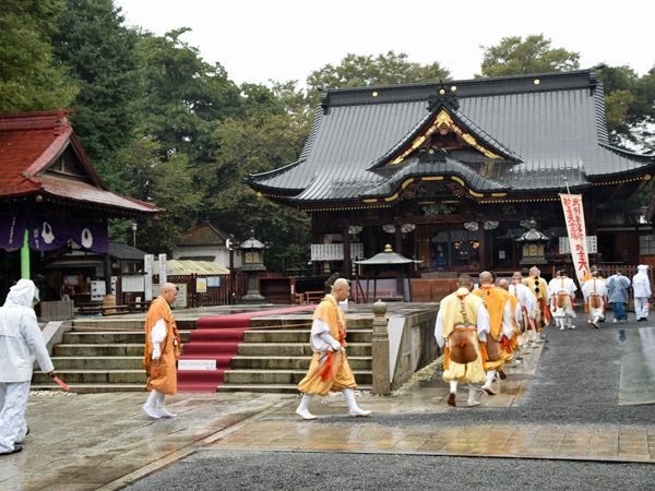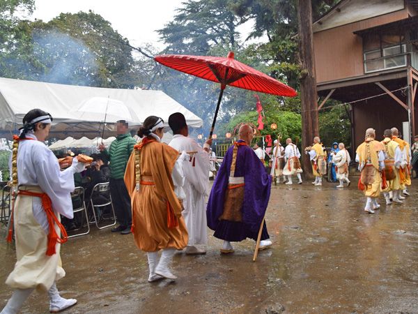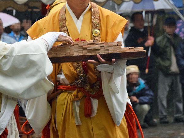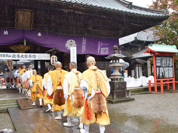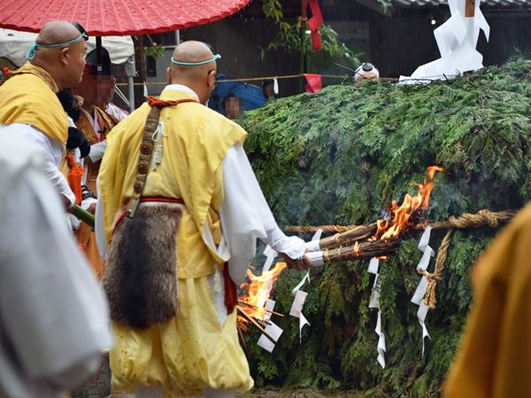 皆さん、山伏装束の上から簡素なカッパをお召しになっていたけど