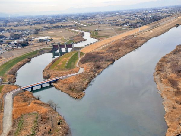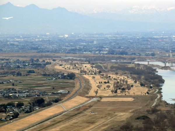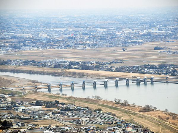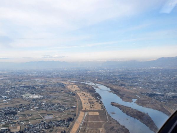 浅間山方面に向かいまして…こうして見ると利根川もけっこう蛇行しているね。