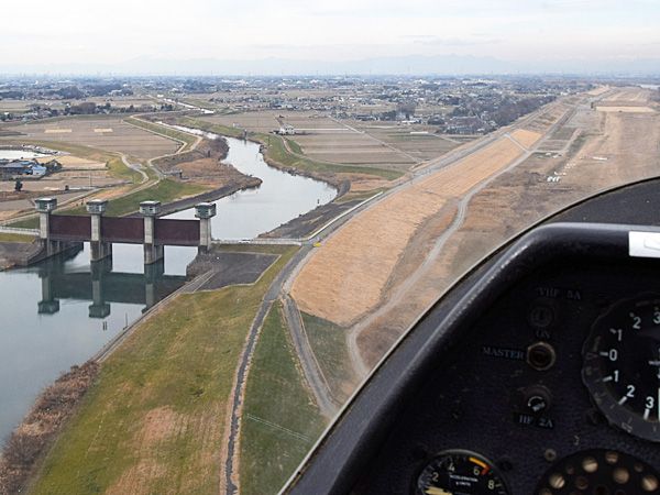 利根川と福川の合流地点、このへんからグッと高度を下げて
