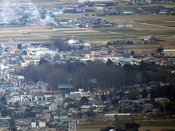 写りがよろしくないけど、あのこんもりした林が聖天様だね。