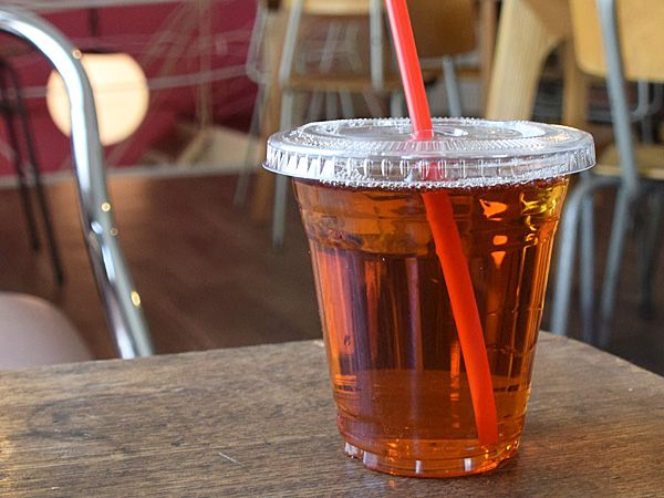 紅茶はテイクアウトと同様、気軽なカップ入りなのだね。