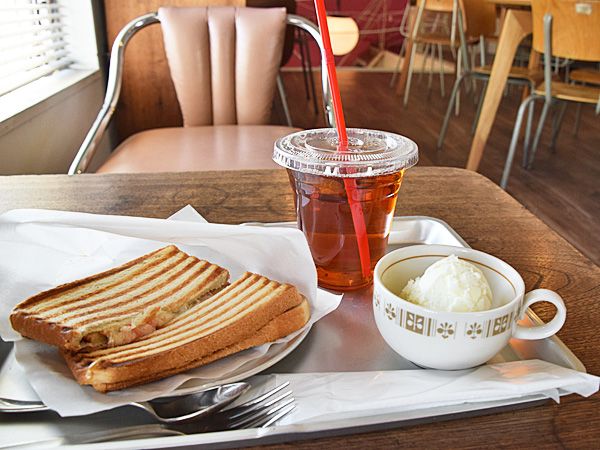 注文したのはアイスティーとホットサンド、どちらも数種類ある中から。