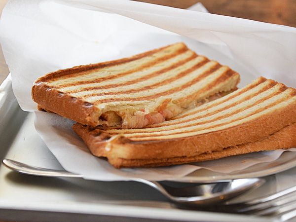 カリッとしたスリムなホットサンドは、なめたけ&マヨ入りで