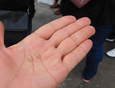 ちょっと加工した状態の、材料の麦を味見させていただいたり