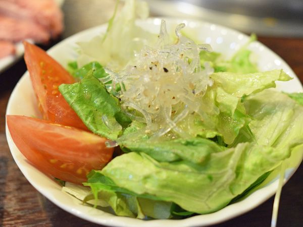セットに込みのキムチと、別途のミニサラダはこんな感じで。