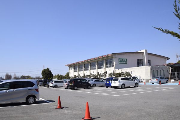 期間中シャトルバスも発着する、妻沼運動公園の体育館の駐車場。