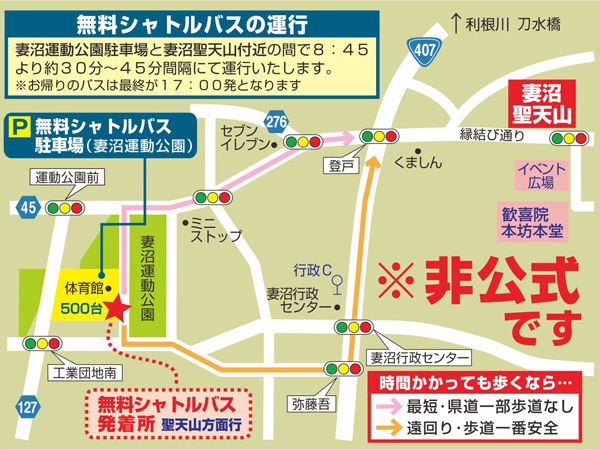 で、体育館から出るシャトルバスは、チラシや地図にもある通り