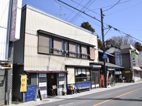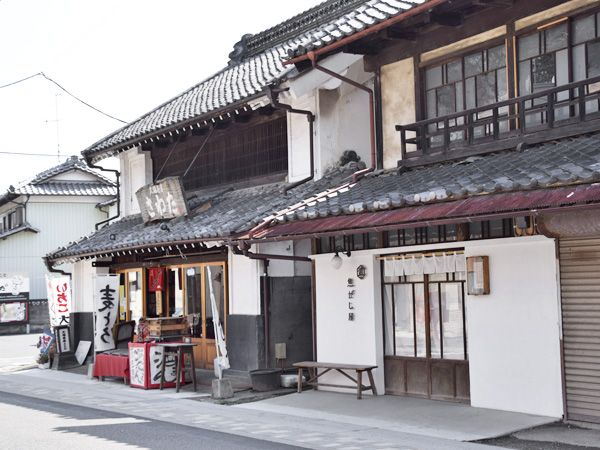 奥に見える白壁の家は、うどん&甘味の騎崎屋。