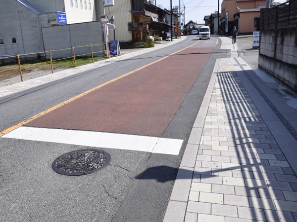 体育館前のこの一角は、歩道が無いけど、普段は通りの少ない道なので