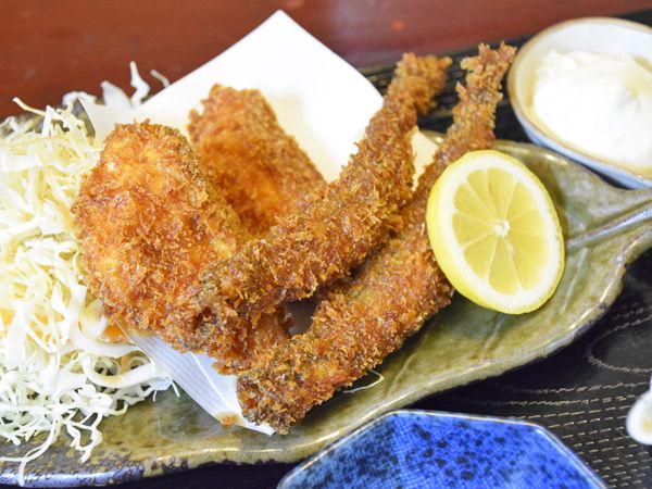 こんがり香ばしく揚がったフライ、ししゃもは苦味と卵のプチプチ感が心地よく