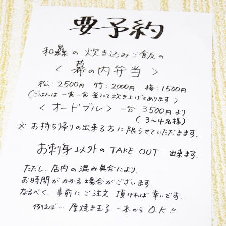 それからお刺身以外のメニューは、ほぼ テイクアウト可 になったそうで。