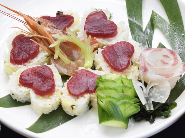 まぐろをハートに型抜きしただけでなく、下のご飯もハートで