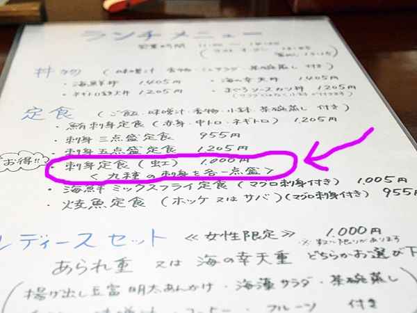 そんなわけで、昨日食べたばかりの「刺身定食(虹)」1,000円。