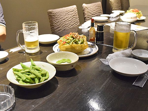 お料理は 枝豆・サラダ・お刺身 でスタート。