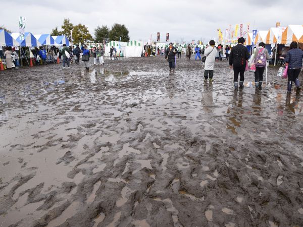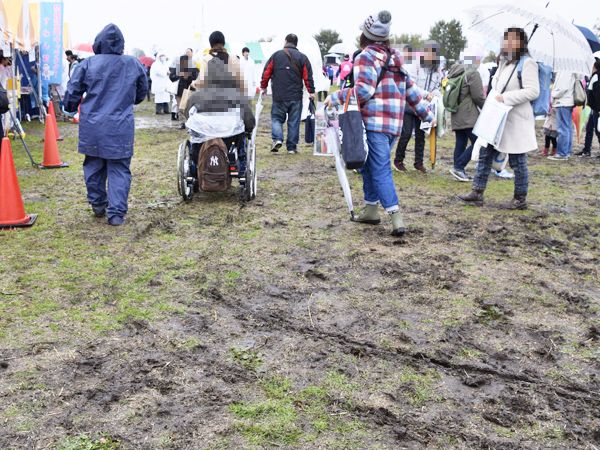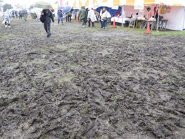 雨は降り続き、人もたくさん通り、ぬかるみはさらに激しく…