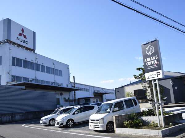 背後にある三菱ふそうが、ちょっと離れた所からも見えて