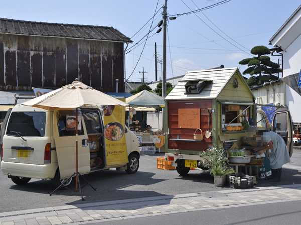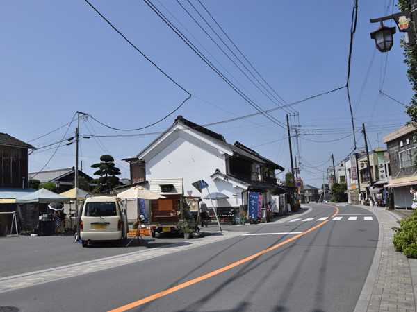 妻沼聖天山周辺の店先などに、雑貨店や食べ物屋さんなどの