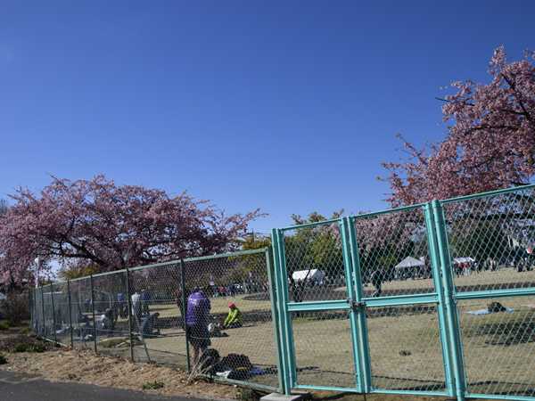 公園の河津桜、外周はだいぶ葉桜化していたけど