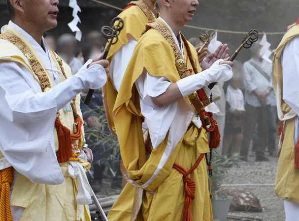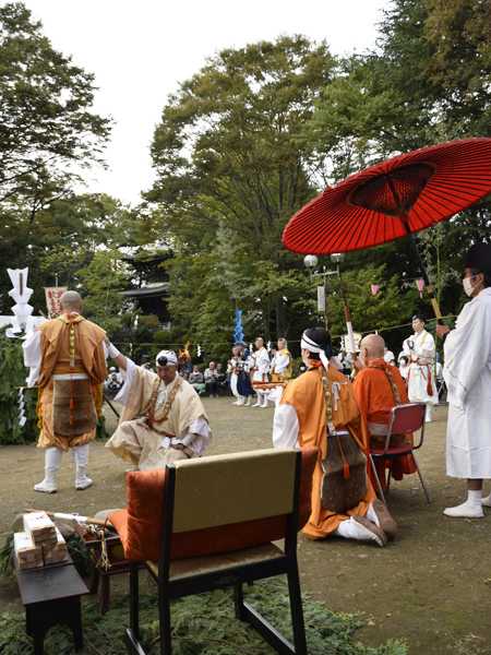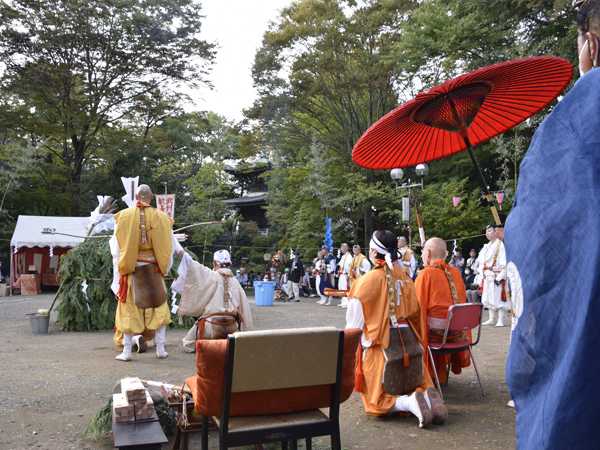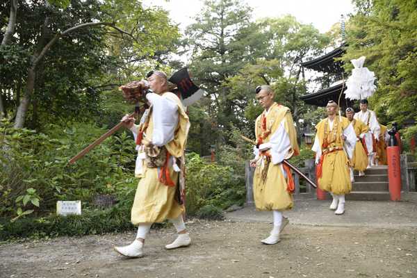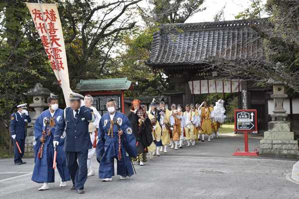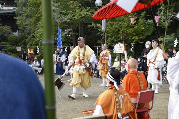 火渡りに向かう行列は、15時ごろ歓喜院本坊を出発。