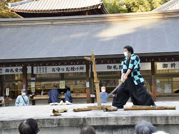 その傍ら、石舞台上では無外流新撰組の居合兵道。