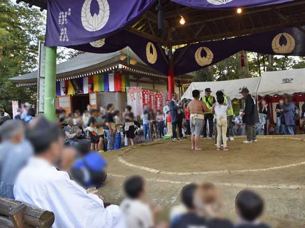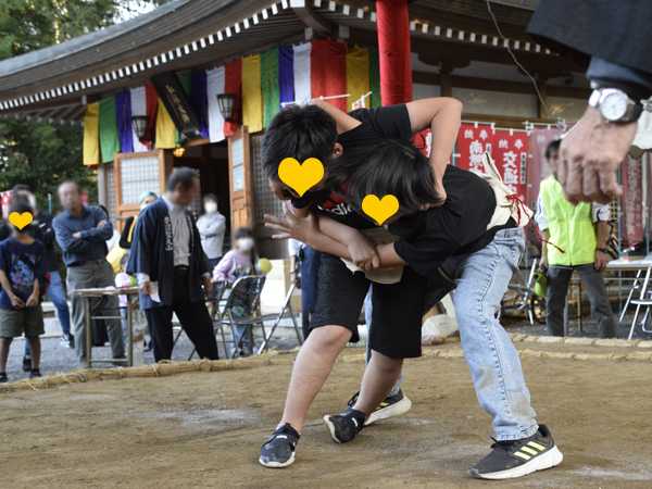 本殿前の相撲場でおこなわれる小学生の相撲大会は、大盛り上がり!
