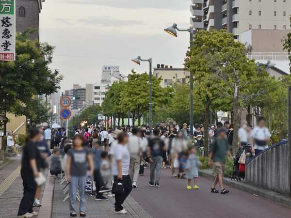 河川敷の辺りでちょっと列が折り返すことも考慮すると、