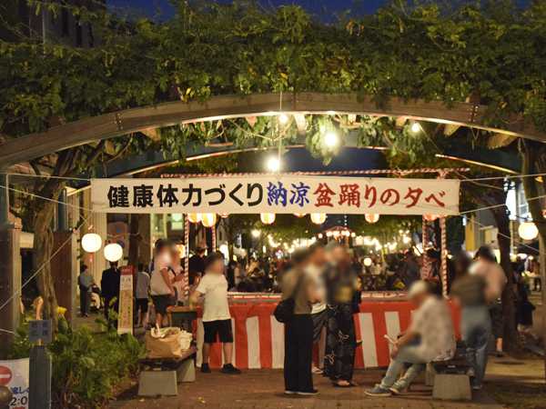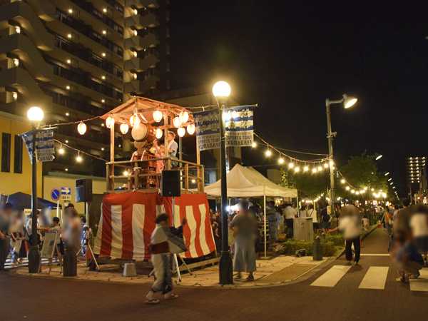 東のほうでは恒例の盆踊り、今回は櫓まであるんだね!