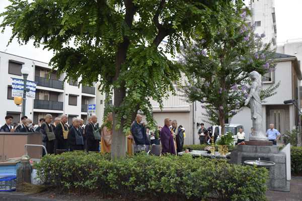 「慰霊の女神」像 の前での、読経やらご挨拶やらを遠巻きに拝見し
