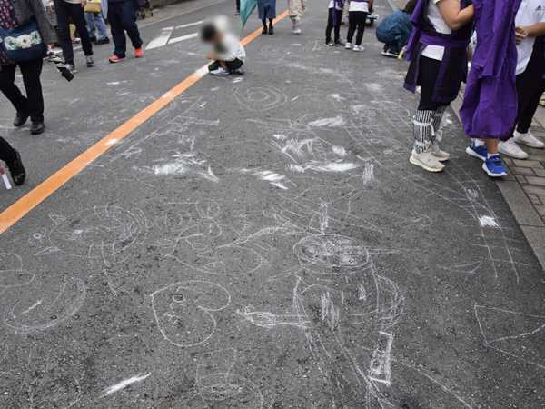 ホコ天だから出来る自由な 路上チョークアート 、縁結び通りにて。