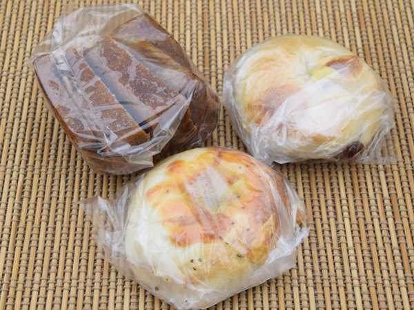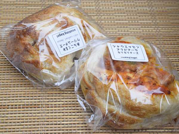 地図「け」の「ウスキングベーグル」では甘・辛ひとつずつ。