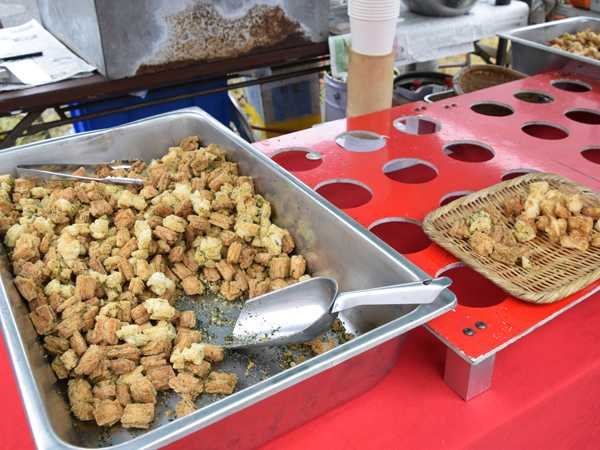 地図「へ」の「揚げもちおじさん」、ずっと試食を配りながら頑張ってたね。