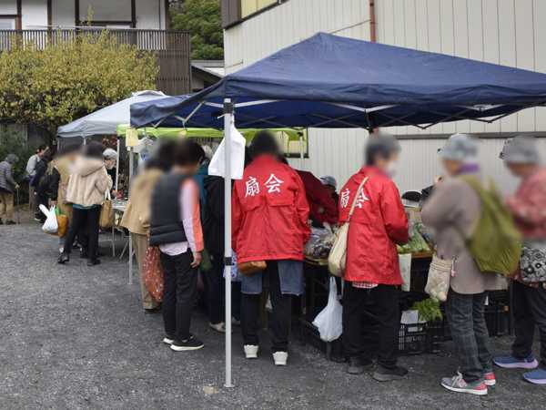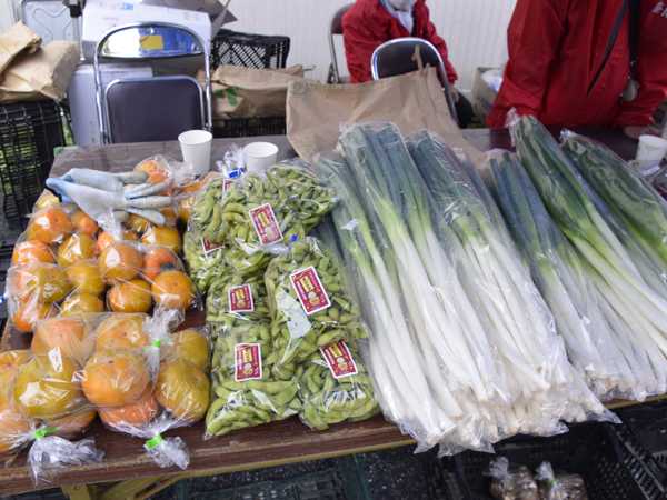 いつも赤いジャンパーの方々が地元野菜を並べているよね。