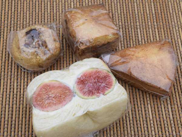 追記:左奥の茶色いのは、お得なバナナケーキ切り落とし。