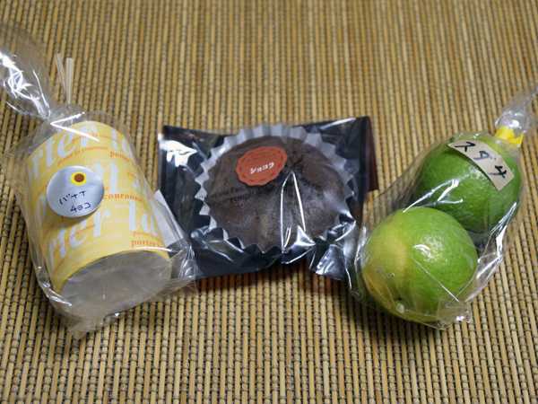「焼きがし果々菓」のシフォン&マドレーヌと「hinata」さんのすだちGET。