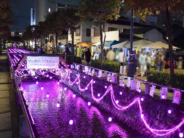 着いた時にはもう、川がピンク色に光っていた行事の重なった10月11日、夜は久しぶりに星川夜市へ行ったよ…ちょっとだけ。※引き続きコメント欄を閉鎖中です、申し訳ありません。ちと順番を崩しますが、あちこち行ったこの日は大里地区の「おおさとまつり」の後に、小さな伝統祭り系に行って最後、星川へ向かったのでした今月の夜市は、ピンクリボンの会とのコラボでイルミネーションの点灯式がある、との事でしたが着いた時にはもう点灯式が終わっていて星川がキラッキラになっておりましたピンク色だとどうなのかな?と思ったけど、結構いい感じですな。では、お店の並ぶ夜市をサラッと流しますか…魔法雑貨店、いたー!今までタイミング合わずに、なかなか寄れなかった知人のお店。魔法アニメみたいな小物の他にも、大人かわいい感じの布製品もたくさん作っているのだね~。バッグに付けられる小物入れが、華やかで目に止まったのでどれにしようか迷いつつ、1つGETこの豪華な刺繍入りの生地は、リボンなんですと。おっと…ジェラートのCANDY工房さん、やっぱり店舗の前にテント出しつつ、店主さんがいつものようにバズーカ構えてる昼間おおさとまつりでもお見かけしたので、もし夜もバズーカ持ってたら敬意を表してジェラート買おうかな、と思ってたんだ(^^)そんな訳で…イベントでは食べたことありますが今宵は初めて、店舗のほうに足を踏み入れてみますか!外観もギラギラしているけど、中も派手ですなヨーグルト&いちご系、酸味系の盛り合わせで美味しくいただいたよ。ちょっと話もあったので、大福茶屋さわた。涼しくなってきた今日この頃なので、あったかいお汁粉&スープですか。たまたま居合わせた知人に、おごっていただいちゃった。YKちゃんありがとーーー!もなかの皮を飾った、お汁粉とスープ。どっちがいい?と言われ、咄嗟にお汁粉と言ったけどあっそうだ、さっきアイス食べたところだった(^^;遅くなってしまったので、滞在時間短め。最後に、ウスキングベーグル1個を持ち帰りまして。どれでも良いかなと適当に選んだら、これも甘い系だったね(^^;こちらは翌朝のごはんに回して、甘甘な星川夜市でした。●当サイトのお祭り・イベント写真は、お顔にモザイクを施しています。→説明コチラ●当サイトの内容はブログ・facebook等 「ご自身で責任を持つサイト」以外には一切の例外なく転載 (抜粋・要約含め) 及びリンクを厳禁いたします。