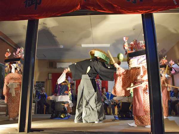 9年ぶりに見た獅子舞、雨天の場合は屋内で舞うのだね!10月11日の夜は、熊谷市須賀広(旧江南町)の「須賀広ささら獅子舞」を拝見。※引き続きコメント欄を閉鎖中です、申し訳ありません。毎年10月の第2土曜日は、江南方面で獅子舞が2つあり…昼間に押切地区、夜に須賀広地区。どちらも数年に一度は見たいと思いつつ、須賀広は夜なので夜外出しづらい立場が何年か続いたこともあり、ちとご無沙汰。今回は、行ってみて本当によかった(^^)ちなみに11日は、おおさとまつりに行ったあとまず、15時過ぎに押切八幡神社へ向かってみたら…ああ~やっぱり「押切ささら獅子舞」は中止か!押切の獅子舞は、途中でゴザ敷いて地面にダイブするような動きもあるので、雨だと厳しいよね(^^;(掲載しそびれましたが、押切は一昨年に見ました)このぶんだと、須賀広も無理かな?そう思いつつ、須賀広の八幡神社を様子見。やっぱり、飾り付けは施してあるけどテントが無い。今年こそはと思ったのに…諦めて帰ろうとしたところすぐ裏に小さな集会所があるのに気付き、そこに幕が張られてテントも。きょうは、獅子舞なしで小さく神事&集会だけやるのかな?今回は久々だし、変わらず存続しているかもハッキリさせたいので思い切って、現地のお兄様方に話しかけてみると…えっ、雨天だけど集会所の中で獅子舞やるんですかっしかも、こんな余所者を大歓迎して下さいまして(^^)聞いてよかった、これは何を置いても見に来ますとも!18時頃~との事なので、暗くなってから出直し。まずは、神社にお参りさせていただき…こちらでは神事がおこなわれていたのかな?集会所に回ってみると、獅子舞の方々の支度も調ってきた模様。ご近所さんも続々と参集、思ったより人が多いね!その中で恐らく、私1人が余所者(^^;そうだ、最初に棒術があるんだっけ。これだけは屋外にて。笛・唄・お獅子様の太鼓に合わせて、舞が始まったよ!お獅子様3頭に、お殿様?(仲立というのかな?)もいてこすり合わせてジーコジーコ鳴る「ささら」を持った花笠の子が4人。1列に並んだり丸くなったり、寄ったり引いたりしつつしばらく進行したところでカインカイ~ン♪と、脱力系の鉦の音。これは「道化」さんが登場する合図!前に「こうなん祭り」で見たとき、事情で道化が省略された事もあるけど今回はどうかな?やっぱり無しですか…今回は屋内開催につき、道化は省略ですと。あれ出ると、楽しいんだけどね。ちなみに道化はこんな感じ、あやしい物体を手に持つ人達(^^)以前、神社で撮った写真です。中休み無しの1つの演目で、棒術も含めて何だかんだ30分近く。皆さんしっかり進行を把握して、よく動いてよく演奏してくれました花笠の子たちは、最後に顔を見せてくれたけど男の子2人&女の子2人、なのだね。わ、胴上げが始まったよしかし、暗くなってからの小さな地区行事にこんなに集まるとは、須賀広地区たいしたもんだ~。総勢、軽く50人を越えていたかと。で実は、お会いできたらな~と思っていた方がいて思い切って聞いてみたら、なんと!ちょうど、私に話しかけて下さった方だったよ。約1年前に掲載した、このブルーベリーチーズスプレッドを作っている「ファームFUMI」さん!(八木橋3Fで買えます)これ、売り場で「どこで作ってるのかな?」とシールを見たら須賀広地区だったので、ビビッときて即買いしたのだよね(^^)そして、とーーーても美味しかったので直接お伝えしたかったんだ。お会いできてよかった。舞いのあとは、地域の皆さんの親睦タイム。なので退散…と思ったら、私まで焼鳥いただいちゃった。皆様、余所者ウエルカムして下さってありがとうございまーす気持ちよく須賀広を後にして、星川夜市へ向かったのでした。また来年以降、神社での通常開催を拝見したいな。悪天候だと中止と思い込んでいたので、今回は「雨天=集会所」とわかったのも、大収穫なり。●当サイトのお祭り・イベント写真は、お顔にモザイクを施しています。→説明コチラ●当サイトの内容はブログ・facebook等 「ご自身で責任を持つサイト」以外には一切の例外なく転載 (抜粋・要約含め) 及びリンクを厳禁いたします。