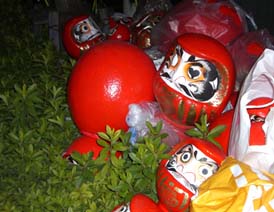 あれっもう菜の花が咲いてるんだ… 早いね、今年初めてみたよ。熊谷市の星川沿い、住所的にもココは「星川」かな。今年は暖かいから、初春のお花の開花が早いみたい 梅と菜の花が好きな私は嬉しい♪でも、なんでこんな“夜景”なのかっていうとね…昨日、星川通りは「だるま市」! 去年は昼間行ったから、今年は夕方にちょろっと覗こうと思ってたんだけどね…夕方、急用が入っちゃって! すっかり遅くなっちまったよ(T T)夜8時過ぎ、さすがにもう殆どのダルマやさんが片付けモード。古いダルマさんの山が、柳の木の下に…なんかコワイなあ(^^;でも中に、おめめがハート♪のお茶目さんを発見。可愛いま、菜の花にも出会えたし、遅くても行ってみてよかった♪