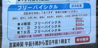 お花見で混雑する熊谷桜堤、自転車で見物するのもイイかもね♪荒川土手はサイクリングロードにもなってるし…眺めもいいし、気持ちいいだろうね。でも家から自転車じゃ行けないし、クルマにも積めないし…っていう御方には、桜堤のある熊谷駅南口から徒歩1分のとこにレンタサイクルもあるよ!駅南口の階段下りると左に見えるトヨタレンタリースのとこの道を入ってスグ!たなか駐輪場さんで借りられるよ!料金はこんな感じ…ま、私はおうちが近いから借りる機会もナイけど(^^;自転車なら、桜堤を端から端まで見るのもいいし、荒川を渡って向こう岸まで行くのもいいし。クルマより自由で、歩きより手っ取り早いね。私も今年は自転車で廻っちゃおうかなあ~昨日のお昼頃にまた桜堤を偵察に行ったけど、やっぱまだまだねえ…でも、まだお花もろくに咲いてないというのに!既にシートしいてお弁当食べてる人がいっぱいいたよ!みんな、私とはまた違った方向で気合入ってるわね~
