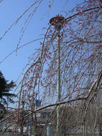 万平公園のしだれ桜、もう花が開きはじめてるよ!!いま撮ってきばかりの写真♪日本の「桜の名所100選」に選もばれてる、熊谷桜堤…開花予想はあと何日か先だけど、実際ど~なのよ?と、様子を見に行ってきたのだ~。そしたらやっぱり、まだみんな蕾の状態…で、せっかく熊谷駅南口に来たんだからとプチ名所・万平公園のほうにも回ってみたら…ん、公園中央のしだれ桜のうち1本が、なんか遠目に見ても赤い色。 これは開花目前か?と思って近付いたら!わ~い!!ちょぼちょぼと咲いてるよ♪♪ まだほんの少しだけど、嬉しい!ここのしだれ桜、綺麗なのよね~おうちから南口まで歩いて行った甲斐があったわ(^^) ちなみに土手のほうは、だいぶ蕾がふっくらしてきてる部分もあるけど。全体的な印象は、まだまだこんな感じ。週末には、ぽつぽつ咲きだすかしらね。 楽しみだね~♪
